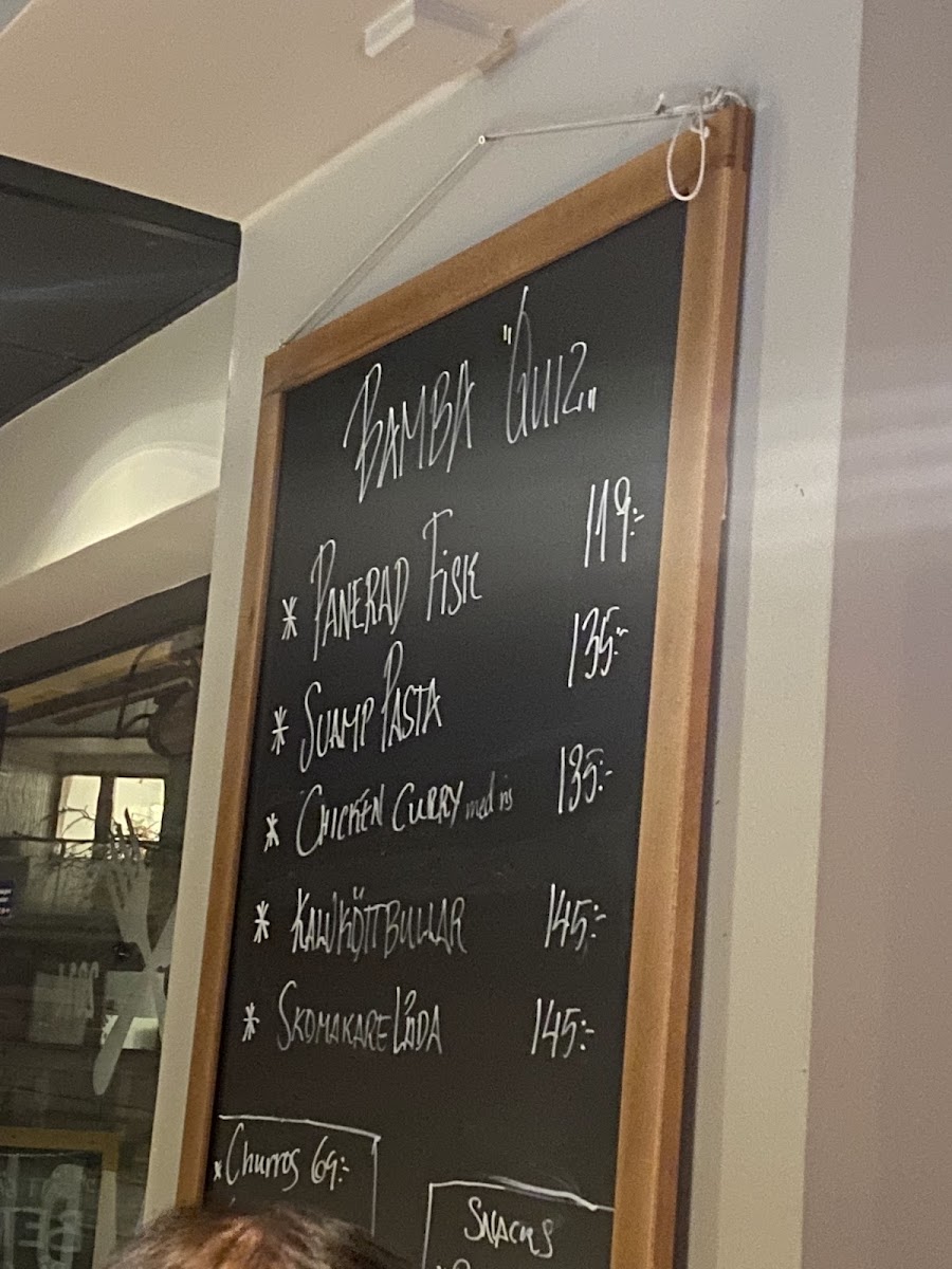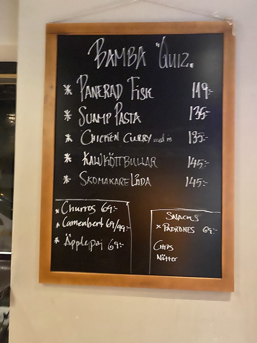 “ Great pub quiz in Swedish! We had a great time. The moderator spoke clearly and was super nice. Food was good. There were just a small amount of non alcoholic beverages. ”
